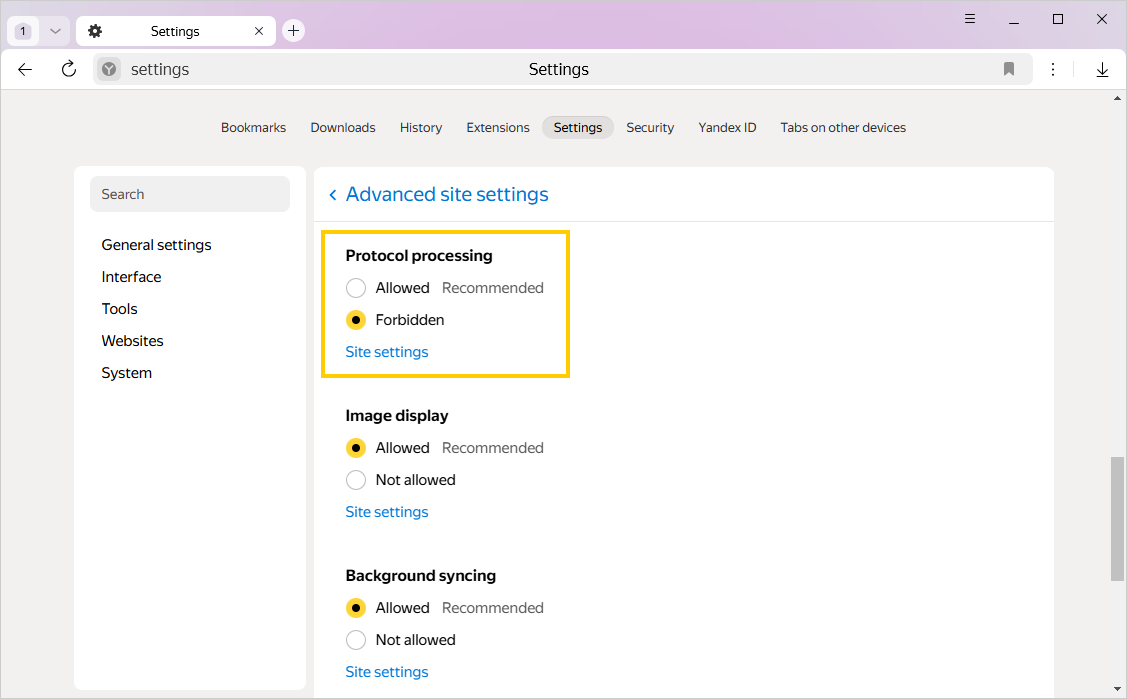 When you open Yandex Mail in Yandex Browser for the first time, it offers to make it your default protocol handler: