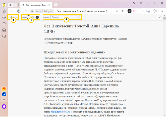 Мәтінге орын босату үшін, экраннан Яндекс Браузердің жоғарғы панелін алып тастауға болады. Ол үшін толық экран режиміне F11 батырмасын басу арқылы өтесіз. Толықэкрандық режимінен шығу үшін қайтадан F11 батырмасын басыңыз.
