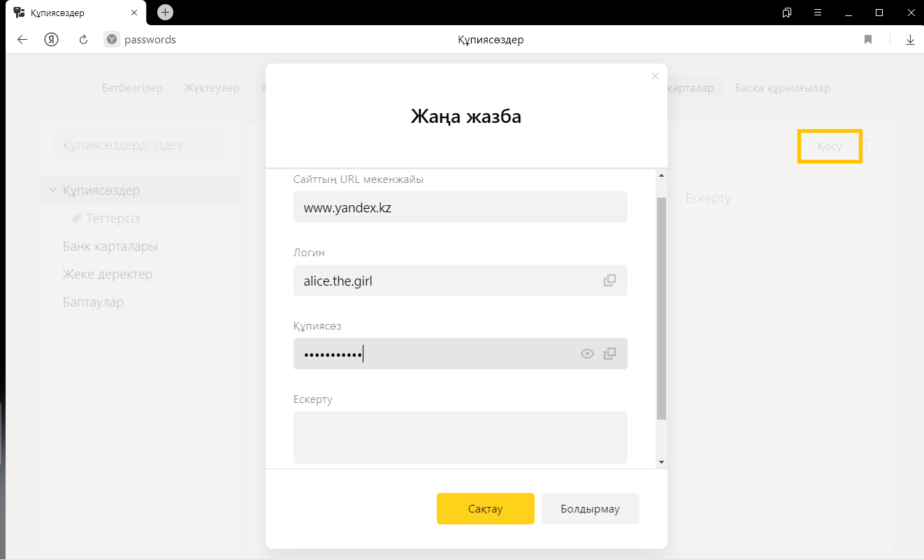 Қауіпсіздік мақсатында құпиясөздер серверде шифрланған түрде сақталады. Сондықтан Яндекс тіпті құпиясөздерді шеше алмайды.