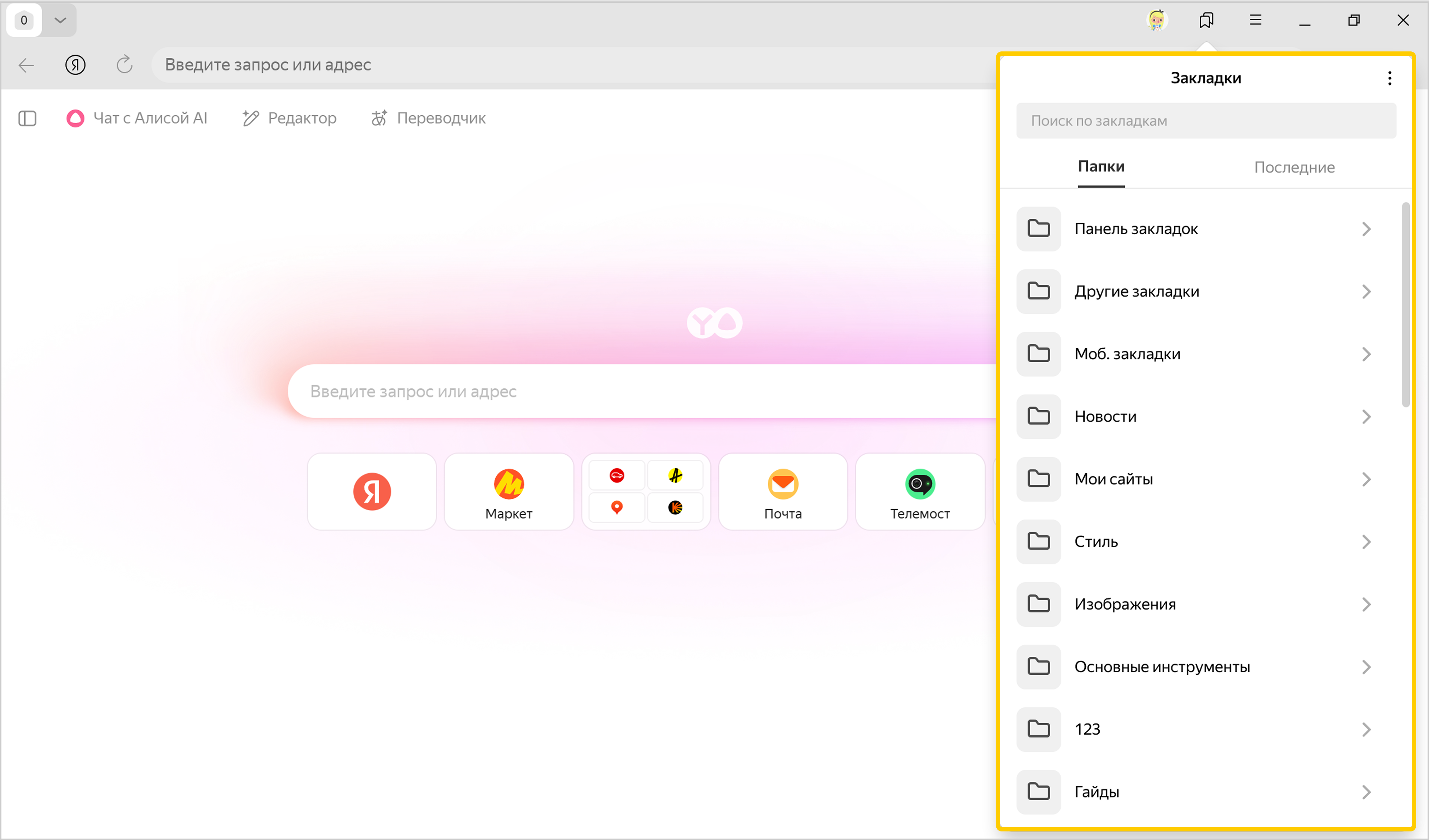 Чтобы разложить материалы по папкам в закладках так, как вам удобно, вы можете: