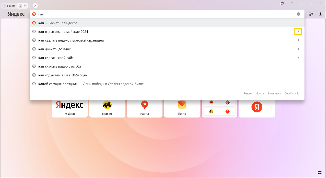 Запросы в поисковой строке Яндекса