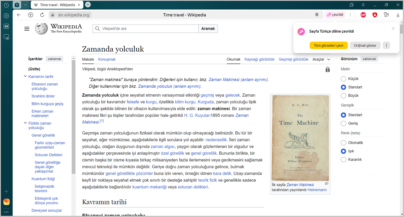 • Arayüz dilinden farklı dillerdeki sayfaları çevirmeyi öner;