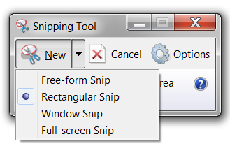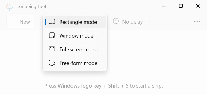 2. Choose a mode: rectangular or free-form snip. Press New and take a screenshot of a window or the entire screen.
