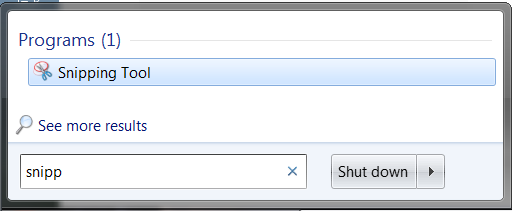 1. To find the application, go to Start →Programs → Standard or type snipping tool in the search bar and click the application name that shows up in results.