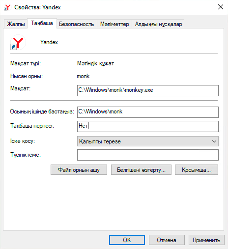 Нысан жолында тек браузердің орындалатын файлына жол болады.