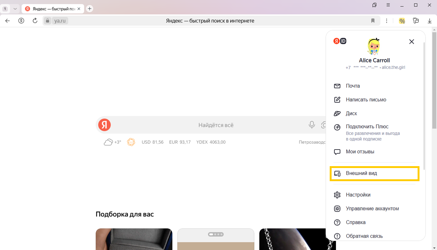 Чтобы включить темную тему для главной страницы, войдите с Яндекс ID.
