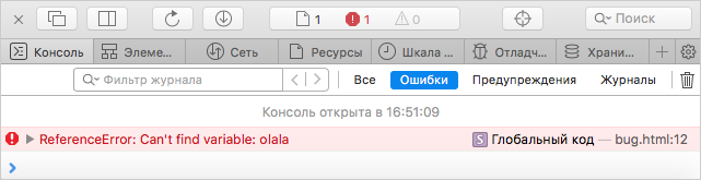Чтобы открыть консоль ошибок, нажмите сочетание клавиш Ctrl + Shift + J.