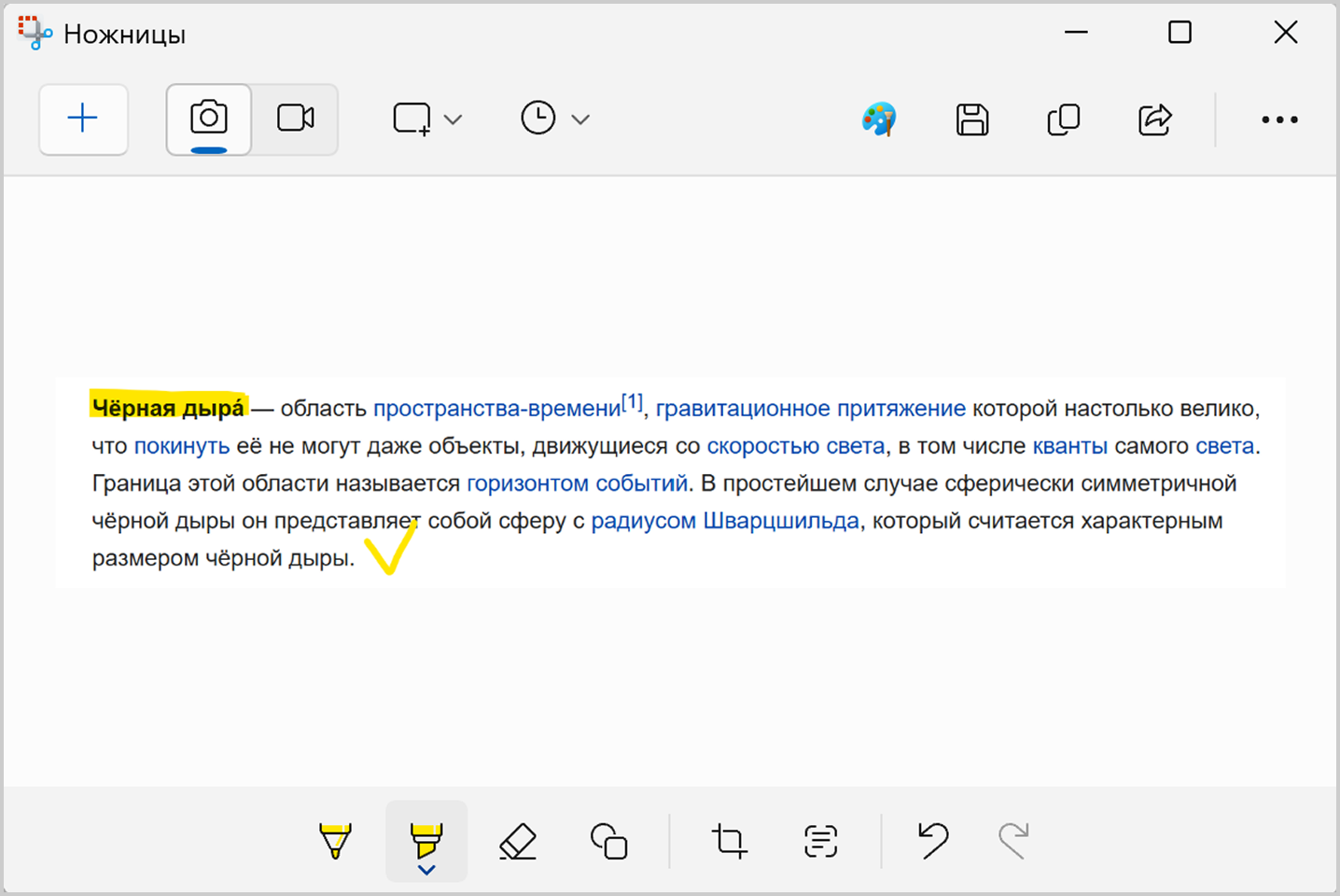 «Ножницы» позволяют сделать скриншот части рабочего стола или всего экрана.