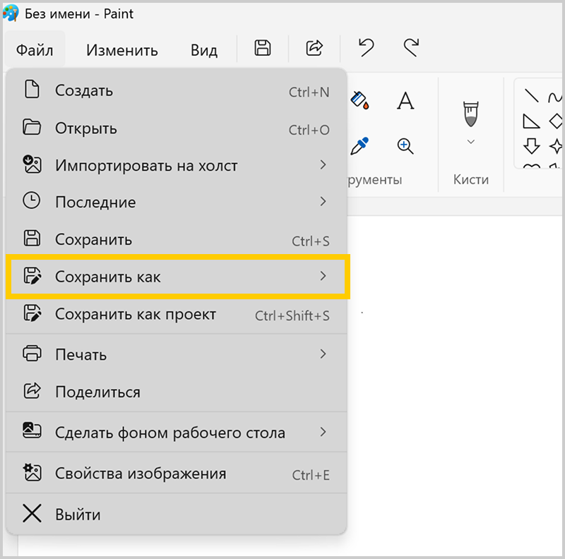 • Windows 8–11: Наберите слово paint в поисковой строке и нажмите на название программы.