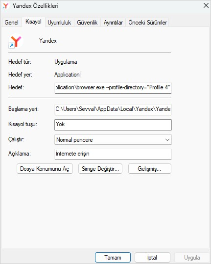 Hedef satırında boşluktan sonra bilinmeyen bir dosya yolu eklenmişse, onu silin ve Tamam’a tıklayın.