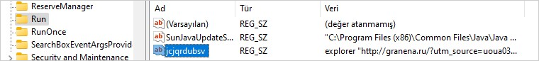 İstenmeyen program, sistem kayıt defterine popüler bir internet hizmetini taklit eden bir reklam sitesinin adresini ekler. Adres anahtarı, otomatik başlatma için yasal yazılımın kaydedildiği bölüme eklenir.