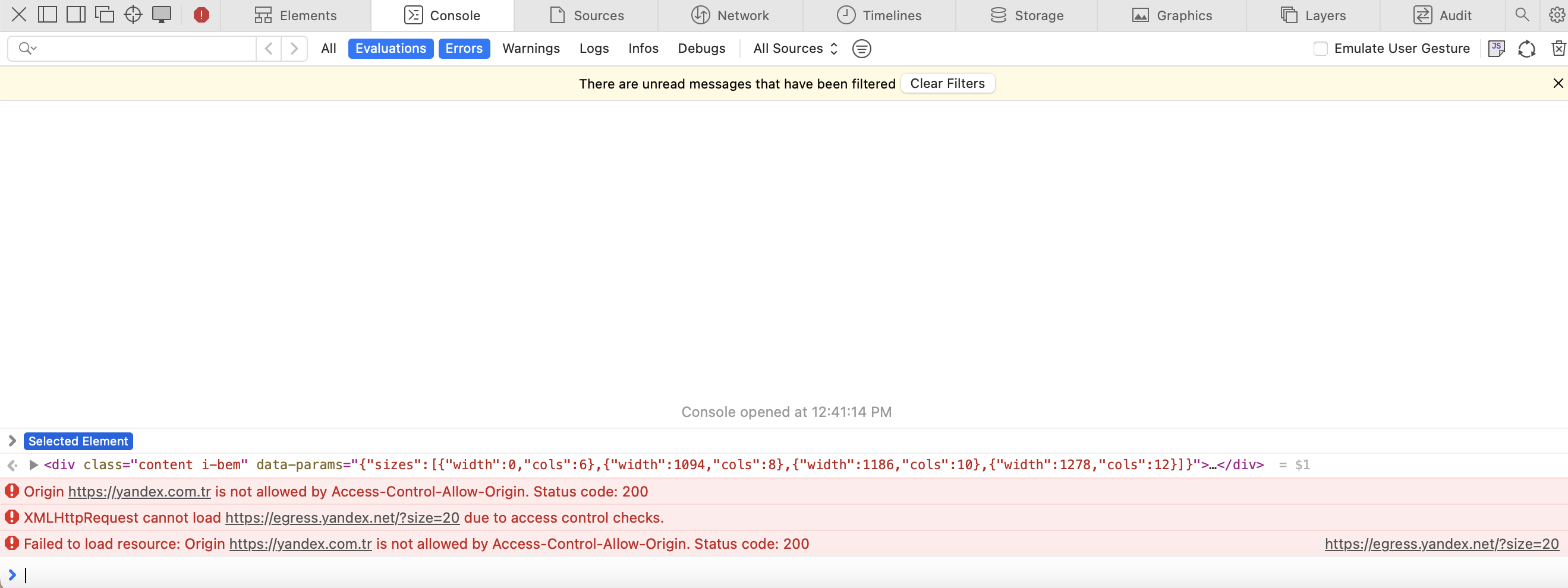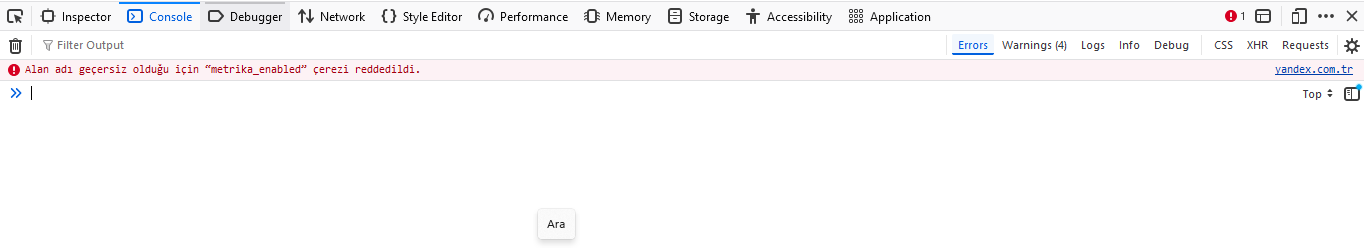 Web sitesiyle çalışırken bir sorun oluşursa, Yandex Browser konsolundaki bilgiler sorunun nedenini belirlemeye yardımcı olabilir. Hata konsolundan mesajı kopyalayın ve destek ekibine iletin.