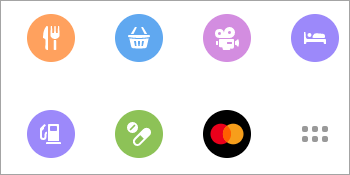 Нажмите на любой из панелей нужную кнопку (например, "Еда" или "Кино"), и на карте отобразятся организации выбранного типа — метками, вид которых зависит от типа объекта. Например: