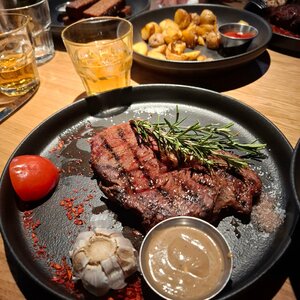 Ресторан The Бык — это стильное заведение с интерьером в стиле лофт и картинами с быками на кирпичных стенах. Приглушенный свет создает уютную атмосферу, в которой хочется проводить время. В меню представлены мясные блюда, такие как стейк рибай, говяжьи щечки с картофельным пюре, а также бургеры и пицца. Гости отмечают, что мясо здесь приготовлено идеально, каждый кусочек тает во рту.