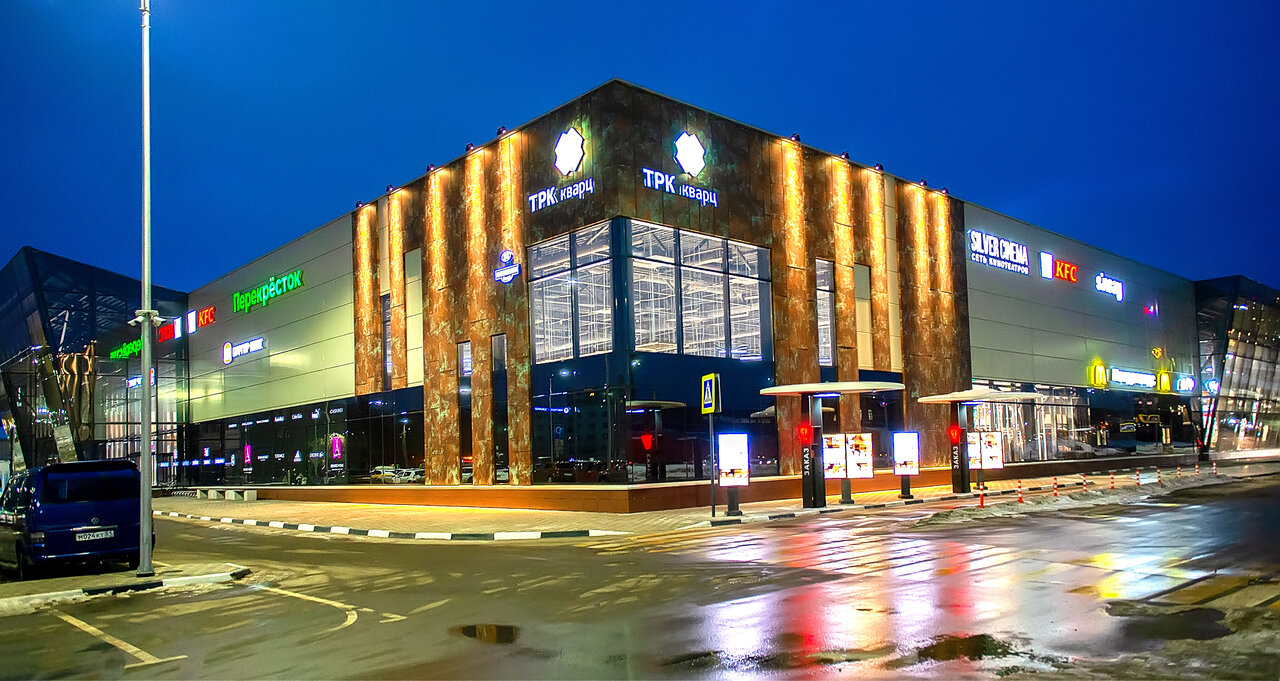 Торговый центр «Кварц» — это место, где можно найти все необходимое для повседневных покупок и семейного отдыха. Здесь есть «Пятерочка», «Лента», «Спортмастер», «Детский мир», «Леруа Мерлен» и другие магазины. Кроме того, в торговом центре есть фуд-корт с бургерами, пиццей, суши, кофе и другими блюдами. Для детей предусмотрены игровые площадки и развлекательный центр.