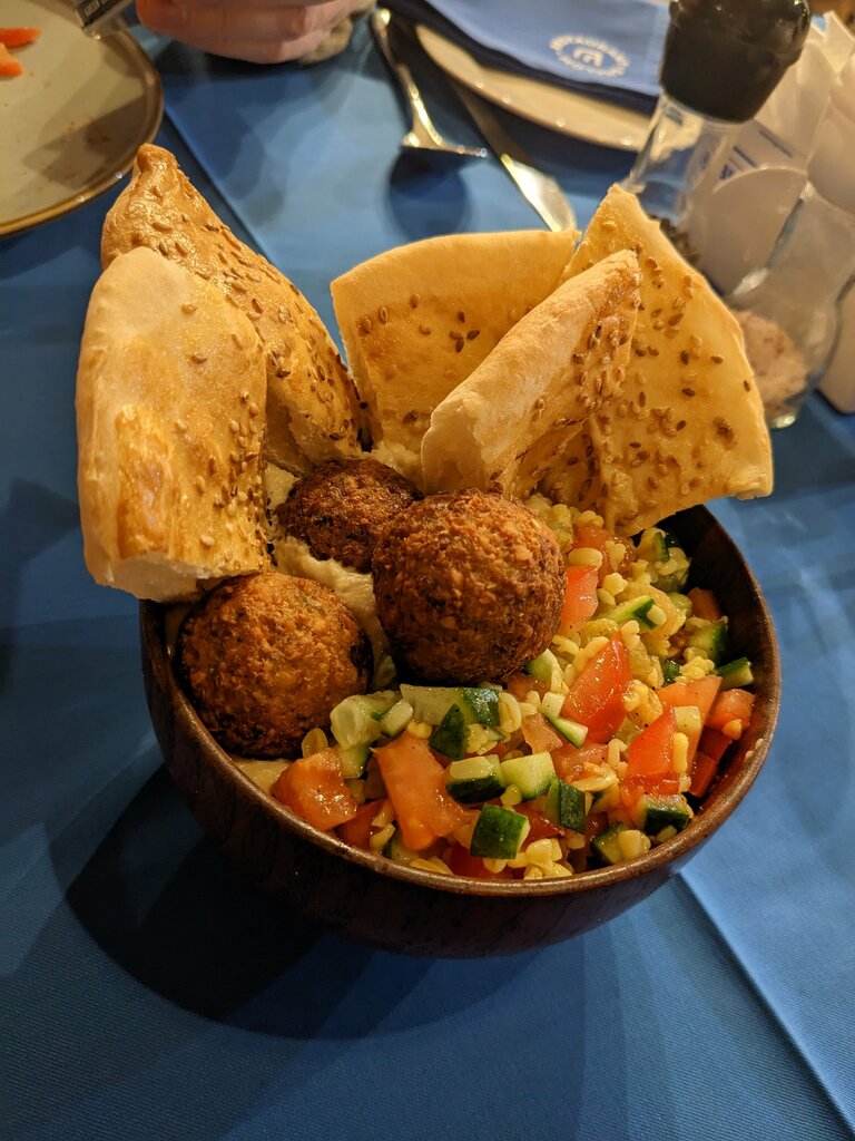 Атмосферное и море место, с колоритной кухней. Попробовали фалафель, хумус классический, питу с говядиной. Всё вкусное. Для не испорченных разными соусами, блюда будут с идеальным подбором количества специй. Понравилось обслуживание, попали в момент, что никого нет. Блюда подали в течении 10-15 мин. Это экстра быстро!.