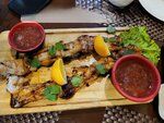Атмосфера снаружи хорошая так как находится возле реки. Но еда меня не удивила. Вкус так себе. Заказали целый форель на гриле так как не было кусковые. В мариновке совсем не держали. Будто наносили сверху сразу готовили. А цены очень дорогие. Обслуживание 20%