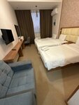 Снизила оценку до 4, т.к. номера уже требуют ремонта ( трещины на раковине, зеркале, пятна на ковролине, плитка в душе чернеет от влаги, канализация булькает,раковина набирает воду). Также опечалил матрас. По мягкости ничем не отличается от пола. Все тело после него болит. Также рядом оживленная дорога и бесконечный поток сигналящих машин. Итог, без сна 4 суток. Тяжело. В остальном гостиница хорошая. Приветливый персонал, уборка отлично, завтрак отлично, разнообразный и вкусный. Чувствуется, что продукты все свежие. Кофе чай на выбор, каша, салаты, рвощи, фрукты, выпечка, мясная и сырная нарезки,мюсли, яйца варёные, омлет. Это ежедневные блюда. Также предлагались блины, долма,голубцы, сосиски и многое другое. Все вкусно 😋. Рядом много кафе.