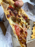 Привезли холодную пиццу , тесто твердое невкусное , жесткое , сыра очень мало , мелтс ужасно пересолены , есть невозможно