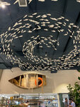 Местоположение и окружающая архитектура очень не свойственны Ташкенту, как будто не в Ташкенте, даже не в Узбекистане, набережная, уютные кафешки рядом, красивый жк и приятно удивила двухуровневая подземная парковка. Все классно! Кухня классная, все вкусно, но порции маловастенькие) большой компанией идти можно остаться голодным) Сервис отличный, официанты оперативные, вежливые и внимательные. Интерьер заведения соответствует названию, особенно инсталляция из рыбного косяка на потолке и механической шевелящейся рыбы. На счёт стоимости ужина не могу ничего сказать, т.к. был приглашенным гостем и счёт не оплачивал. Рекомендую!