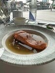 Стейк из осетра с пюре отличный, на 5 баллов. Салат с грушей очень большой и вкусный. Салат с малиной и сыром надо доработать, он сухой, без заправки. Меню тестовое, но и в нем нет части позиций. Очень ограниченный выбор вина. Сервис хромает. Рыбу подали через 3 мин после салата! Официанты не очень хорошо знают меню. Интерьер приятный. 4 из 5 за рыбу, а так в цнлом на 3