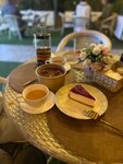 Достойное кафе, рядом нет ничего более менее приличного… вкусные чаи, сан Себастьян, приятная посуда, неплохие сосиски в тесте🫶🏻 терраса уютная, высажена живая изгородь. За каждым столиком вазочка с искусственными цветами( ну такое себе…) В остальном неплохо