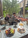 Новый ресторан плова. Именно ресторан. Цены там выше среднего. Например ачичук 42 000, салат из баклажанов 118 000 и т.д. Сюда хорошо прийти посидеть , пообщаться, угоститься пловом. Плов разный. Когда мы были, готовили 4вида плова на казанах. Бухарский мне очень понравился. Атмосфера хорошая, доброжелательная, официанты расторопные. Убранство тоже приятное. В зале потолок привлекает внимание. Есть на что посмотреть из интерьера. Обязательно обратите внимание на коллекцию керамики разных регионов. Это интересно.
