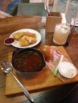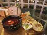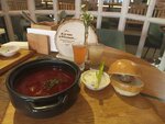 Сегодня заглянули на обед в данный ресторан. Интересное, уютное заведение. Но) такое впервые случилось, чтобы в меню не оказалось ни одного блюда из выбранного нами списка) Это в воскресенье, в 16 часов... Заказали то, что оказалось в наличии. Борщ супруг оценил, вкусно. Суп Чаудер мог быть интереснее, на мой вкус. Но вот "томленые телячьи щечки" меня огорчили. Всего 2 кусочка, с жилами + немного жидковатого картофельного пюре за 970 руб ...это печально. А вот рыбник оказался очень хорош, очень вкусный! Ну и чай имбирь-клубника тоже вкусный, действительно с пюре клубники, а не сиропом.