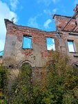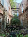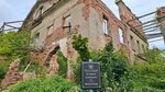 К сожалению главное здание находится в аварийном состоянии, огорожено забором. Две стены подпирают мощные железные конструкции. Обойти полностью не получилось, примыкает к частной территории. Рядом имеются другие усадебные постройки и яблоневый сад.