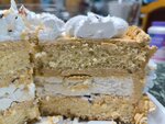Несколько лет мы были постоянными покупателями тортов Алины. Пару лет назад был случай, когда на торжество приобрели торты, но оба оказались невкусными. Из-за этого перестали быть покупателями. В гостях вновь попробовали выпечку Алины.. Удивительно, оказалось так же вкусно, как и раньше. И вот, 25.08.25 купили на День рождения Пьяную вишню и Графские развалины. Пьяная вишня оказалась с мизерным количеством вишни, крема и вообще суховат. Что касается Графских развалин, то продавец в зале сказала, будто в нём безе, цукаты и крем. Разрезав дома, увидели два очень толстых плотных бисквитных коржа, корж из безе и , наверное, одну на весь торт кислую сливу. Ладно, по описанию не то, что нам озвучили. Но он очень сухой, никакого удовольствия. Торт есть никто не стал. В чем причина, если сегодня - вкусно, а завтра - нет?