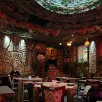 Пятница, вечер. Шумно. Многолюдно (настолько, что у гардероба поставили столы и стулья для ожидающих и люди по 30-40 мин ждут, пока освободится столик). Ярко. Оригинально. Хочется сфотографировать примерно все. Тесно (по крайней мере в основном зале). Для тишины , бесед и умиротворения - не сюда. Здесь энергия, кипучая жизнь, шум, музыка. Кухня острая, порции небольшие (но сюда, думаю, не за тем, чтобы наесться от души, надо приходить), коктейли забористые. Обслуживание - норм, официанты стараются, поддерживают впечатление. К тому еще и администратор ходит в зале, общается с гостями, рассказывает и про концепцию, и про оформление, и про традиции. Прикольно! В итоге: хочется ярких впечатлений, эмоций и долгих воспоминаний - сюда! ))