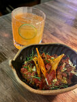 От одного посещения мы поняли, что хотим возвращаться снова и снова. Пришли в дневное время с подругой, было мало людей, немного света, комфортная обстановка Выбрали салат с вяленым мясом и чатни, кесадилью, острый фарш с картошкой, чуррос. Все блюда на высоте, отлично приготовлены и яркие по вкусу Взяли коктейли, они также прекрасны, еще нас угостили мескалем и рассказали как его правильно пить, погрузили в концепт ресторана. За это отдельные благодарности В общем, заведение покорило наши сердечки – едой и напитками, атмосферой, отношение к гостям, красотой интерьера. Рекомендуем и строим планы, когда снова посетим 🫰🏻