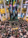 Почитала восторженные отзывы об этом месте. Не совсем разделяю.Есть несомненные недочеты. Если учесть близкое расположение к метро и вокзалу, а также габариты самого центра, то очевидно, что очень мало места выделили под фудкорт. И выбор еды по сравнению с другими тц оставляет желать лучшего. Это объективная оценка. Ни на одном этаже нет скамеек для того, чтобы просто посидеть, если устали ноги. Само здание тоже украшено спорно. Современное искусство не всем нравится, а это все-таки фасады не в частном доме или музее, а в общественном месте. Несколько оттталкивающий вид.