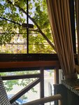 Отличное заведение с прекрасным интерьером. Есть веранда на втором этаже. Несмотря на близость дороги и многоэтажного дома, это вообще не заметно, потому что густая крона деревьев скрывает это. Свежайшее ледяное пиво. Из еды пробовал только курзе, и они прекрасны. Можно курить на веранде, для меня это плюс.