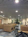 Отвратительный зал!!! Бизнес залом , язык не поварачивается назвать!!!! Элементарно Туалета нет!!!! Даже руки вымыть негде!!!! Это вообще как????? Только выходить из зала и ехать на эксковаторе! Игровой комнаты конечно тоже! Скудная столовая , не больше!!! Ужас просто!!!! Были разочарованы! Ночной перелет , хотели отдохнуть перед рейсом, а попали сюда!!! Находится, просто в коридоре аэропорта, огорожен- канатами!!! Народу море!!! Все друг у друга на головах! Из еды- лапша, которая закончилась почти сразу, и так больше я ее не дождолась, только ребенка успела ей покормить. Сухая греча, сосиски и капуста тушоная с сосисками!!!! И несколько салатов! Как могут быть такие блюда в бизнес зале????? Мебель плетеная, столики малюсенькие, семьей вообще неудобно! Посуда одноразовая( Убирают , можно сказать не убирают вовсе, носили выкидывать сами, не дождались…. Персонал буфета совершенно не приветливый, не довольные! Они несчастные сидят на корточках, за стеной, хоть бы стулья сотрудникам поставили! !!! Про алкоголь можно и не упоминать, конечно же его нет.(как оказалось, не это самое страшное)) Позор просто , а не бизнес зал!!! Сберу отдельный привет! Кошмар , а не отношение к своим клиентам!!!!