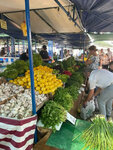 Ммм рынок шикарный. Овощи,фрукты,пряности. Огромный выбор. Не понравилось что не дают убирать гнилые ягоды с коробочки. Но не все продовцы. Деньги можно перевести либо нал. Многие продовцы готовы помочь. Собирут, упакуют и дорогу покажут на выход))))