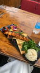 Шли за форелью,ожидала большего.Рис вкусный,а вот форель сухая(((Десерты,фри ,пицца,кофе это все вкусное.Из коктейлей половины нет в наличии.Можно сидеть внутри и на улице,вечером там отлично.И берите наличку, иногда вайфай виснет