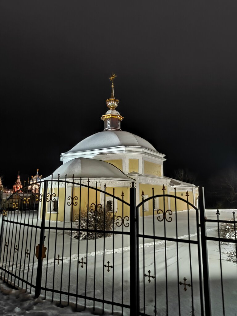 Зимняя церковь из очередной пары вместе со Входо-иерусалимской летней церковью прямо между кремлём и торговыми рядами. Тут поблизости зимой катают на санях