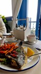 2024. Посещали данный ресторан в прошлом году. Он показался нам дружелюбным и гостеприимным. Решили посетить его и в этот раз. Девушка-хостес была полностью индифирентна к нам. Официантка своим видом показывала, что делает нам одолжение, обслуживая. Взяли окрошку. Да, блюдо простое, но хотелось интересной подачи. А так подали крошево в квасе с двумя плевками сметаны. Халуми вкусный, томаты вяленые тоже. Брали ещё мидии. Порции небольшие. Цена высокая. В меню , будьте внимательны, цены на многие блюда указаны за 100 грамм, а минимальная подача 200 грамм. Красивый интерьер на берегу моря. Есть места по вкуснее.