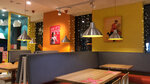 В полне приятное место, есть игровая зона для самых маленьких. Немного странный персонал, но свою работу делают. В доступности горячий термос, можно и просто кипятка попить, если хочется просто посидеть. Обычно мало народу, за редкими исключениями. Чистенько, ещё бы везде камеры, всё вовремя убирают. Лампы над столом низковато висят, осторожно можно услышать колокольный звон от удара головой.