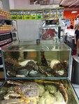 Хороший продуктовый рынок, где продается много сахалинских продуктов, в том числе икра, рыба всех видов (вяленая, соленая, копченая, свежая и мороженая) крабы в основном в виде уже разделанного мяса, но есть и живые ну и конечно икра (есть местная и с курильских островов) в металлических банках прошлогодняя и совсем свежая на вес и фасованная в пластиковые банки (без консервантов). Все продукты могут упаковать по желанию для перевозки в багаже самолета и расскажут как заморозить и как перевозить. Мы купили рыбы копченой, соленой, икры, филе рыбного, все заморозили в холодильнике (жили в апартаментах) и все благополучно доставили в багаже до Москвы, ничего даже не оттаяло, поэтому можно смело перевозить, икру в пластиковых банках конечно же проложили побольше вещами чтобы не раскололось при погрузке багажа. Цены на свежую рыбу и мороженую ниже чем на материке, икра тоже не много дешевле, вяленая стоит так же как в Москве, но на мой взгляд свежее и вкуснее. Есть корейская лавка с кучей всяких вкусных салатов, водорослей, мяса и рыбы всяких видов. Фрукты и овощи тоже есть. Ещё купили там замороженные суповые наборы (том ям уже пробовали - вкусный, но по цене получается практически как в общепите в Москве и хемультан, ещё не варили, но в Южно-Сахалинске и других островных гооодах он был очень вкусный, рекомендую обязательно попробовать, порции большие, можно одну на двоих брать) А вообще на рынок туристам рекомендую сходить обязательно.