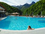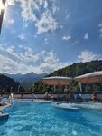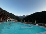 Замечательное место для отдыха с шикарными видами на горы. Открытый бассейн с подогревом и джакузи. Есть в крытом помещении аквапарк для детей разных возрастов. А для взрослых еще сауна. Рекомендую к посещению.