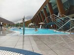 Конечно полноценным аквапарком это назвать сложно, скорее аква центр. Есть хороша малышковая зона, две короткие, но скоростные горки для взрослых и детей от 120см, горка с виражами для взрослых и детей 120см и одна крутая для взрослых и детей от 140см. Бассейн с волной не работал. Есть несколько «речек» и джакузи. Самое, на мой взгляд, интересное это открытая зона с видом на горы. В комплексе идеально чисто и удобно расположены шкафчики, душевые и туалеты. В целом осталось очень приятное впечатление. Нам трёх часов хватило.