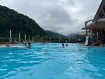 Непередаваемые впечатления - плавать в бассейне с видом на горы! Великолепие! А при заснеженных вершинах, наверно ещё круче! Несколько горок для взрослых, интересные горки для маленьких, река, бассейн с волной, много джакузи, хамам, сауна и даже комната с ледяным душем и ёмкостью со свежим льдом.