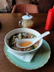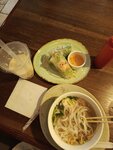 Как обычно не сфоткали и стали наслаждаться). Очень вкусный Том Кхе, официант предложил эту разновидность Том Яма, т.к он менее острый. Доча ела Фо Га и спринг рол. Очень вкусно, цены приятно удивили. Из десертов брали нашу любимую шоколадную бомбу (ранее заказывали это пироженное). Рекомендую!