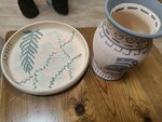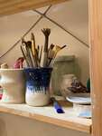 Уютная мастерская. Преподаватель по росписи на керамике очень помогала на мастер классе, создала приятную атмосферу. Ходили с ребенком, 8 лет. Вот такие работы остались у нас на память. Будем пользоваться в обиходе. Спасибо!
