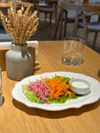 Хорошее место! Особенно приятно, что есть завтраки. Внутри красиво, стильно. Не понятно, как есть десерт Павлова, его невозможно есть ни руками, ни вилкой) Не понравился скрембл с кальмаров, очень неприятный запах и почему-то всё плавает. Ещё из непонятного: как позвать официантов? Остается загадкой и иногда приходится очень долго ждать. Очень нравится кофе, завтраки, том ям. Официанты обычно вежливые, готовые помочь. Но приходится дожидаться, пока заметят. Удачи в развитии! Очень хочется больше вариаций блюд без мяса.