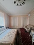 Хороший отель, снимал 2 номера, один из них был с двумя двуспальными кроватями. В целом, в Черкесске это один из самых удобных по расположению и комфорту отелей. Достоинства: 1. Большие номера и кровати, наличие тапочек, халатов, фена и прочих компонентов первой необходимости. 2. Близость к центру города. 3. На первом этаже есть ресторан. 4. Чисто, убирают хорошо. Недостатки: 1. Ванная комната и туалет, встроены в комнату, как бокс из гипсы. Шумоизоляции нет, в связи с чем есть ощущение, что ты находишься в комнате без стен. В целом, слышно не только туалет, но и соседей из других номеров. 2. Есть проблемы с сантехникой, требующие внимания со стороны отеля. 3. В одном из номеров был выход на балкон, но утром выяснилось, что балкон общий и можно увидеть соседа - заядлого курильщика, что весьма неожиданно 😄. Хорошо, что в номере были блэкаут шторы 🙃 В целом, рекомендую.