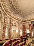 Шикарный театр, камерная такая обстановка, лепнина, картины на потолке, вид на Неву и Петропавловскую крепость) Шикарная люстра. Сам театр мне очень понравился. Буфет - средне, не такой, конечно, как в Новой Мариинке. А сам театр - да, стоит посетить.