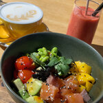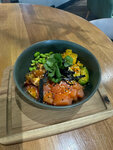 Пришли с молодым человеком пообедать, еда на уровне, цены для такого качества весьма приемлемые. Брали поке с лососем, салат с баклажанами, бургер с беконом(суууупер вкусный!!) напитки и десерт - венские вафли и меренговый рулет. В вафли я влюбилась - не приторно сладкие, нежные, с кислинкой. Балдеж Официант улыбчивый, смешливый, обязательно подскажет вам с выбором. Единственный минус, который нашла - на входе никто не встречает и нужно самостоятельно сориентироваться куда можно сесть. Но я не думаю, что это супер критично Ну и да, мест маловато, зато получается очень уютно и создается ощущение уединенности